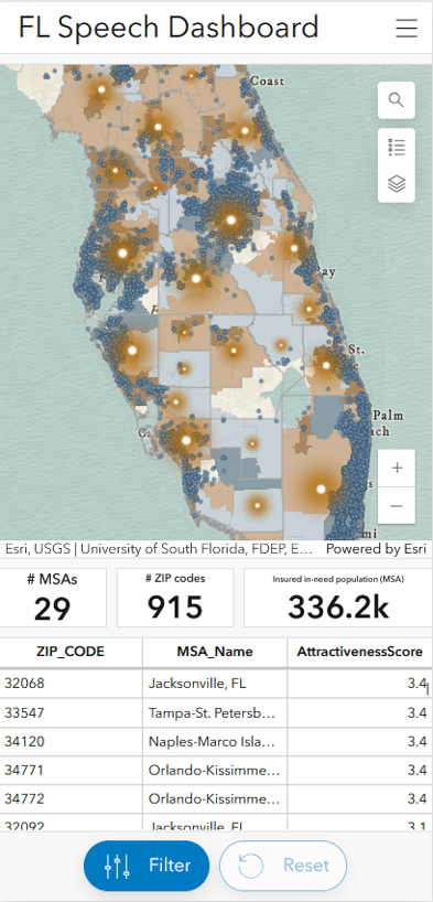 ArcGIS online dashboard to display speech language pathologist data in Florida, USA
